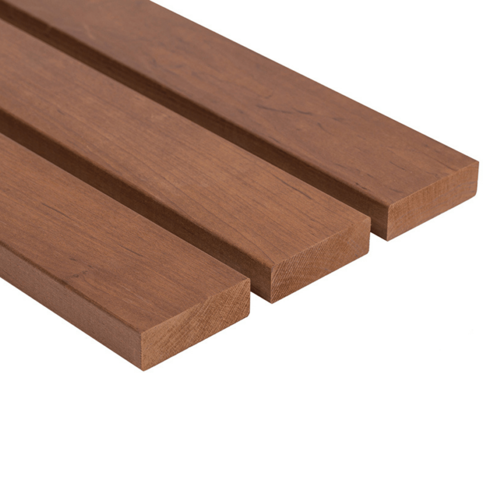 Alder is a hardy and water-repellent wood that doesn’t overheat. Intense thermal modification gives alder an elegant darker brown shade. This durable dark brown wood won't secrete resin, splinter or overheat making it an ideal sauna material.