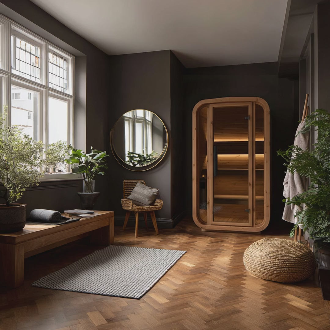 Transform any room into a personal wellness retreat with our compact Thermo Wood Cube Sauna. Expertly crafted in Estonia with authentic Baltic sauna heritage, this premium indoor sauna combines modern design with centuries of traditional craftsmanship.