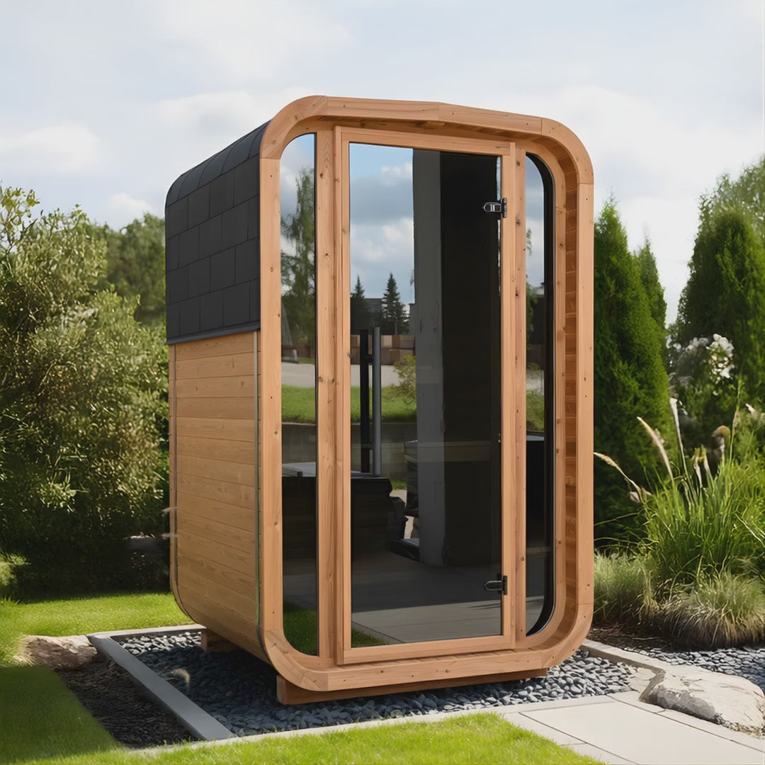 Transform your garden into a personal wellness retreat with our compact Thermo Wood Cube Sauna. Expertly crafted in Estonia with authentic Baltic sauna heritage, this premium outdoor sauna combines modern design with centuries of traditional craftsmanship.